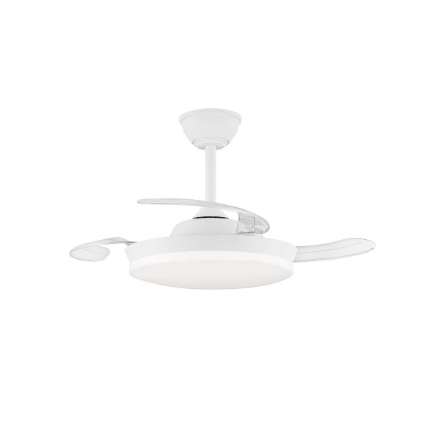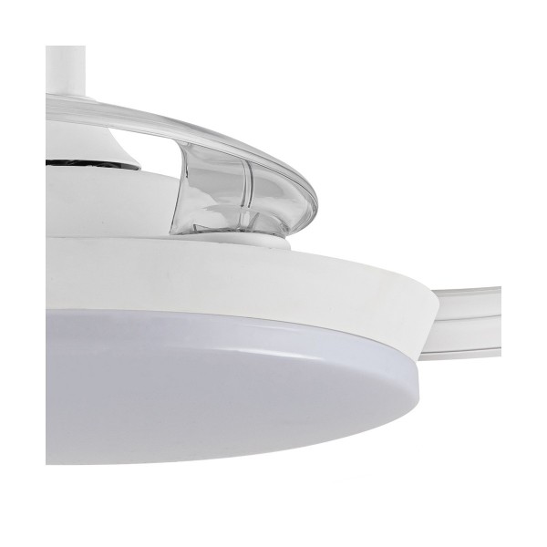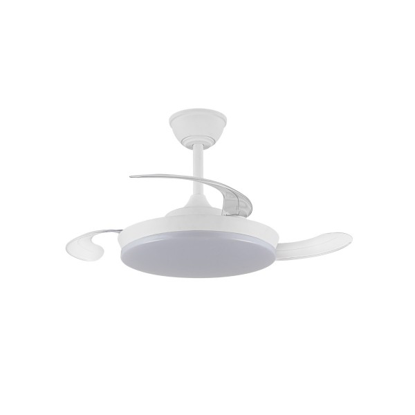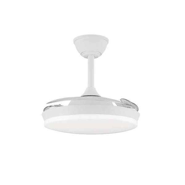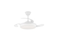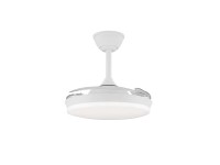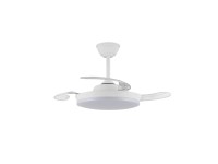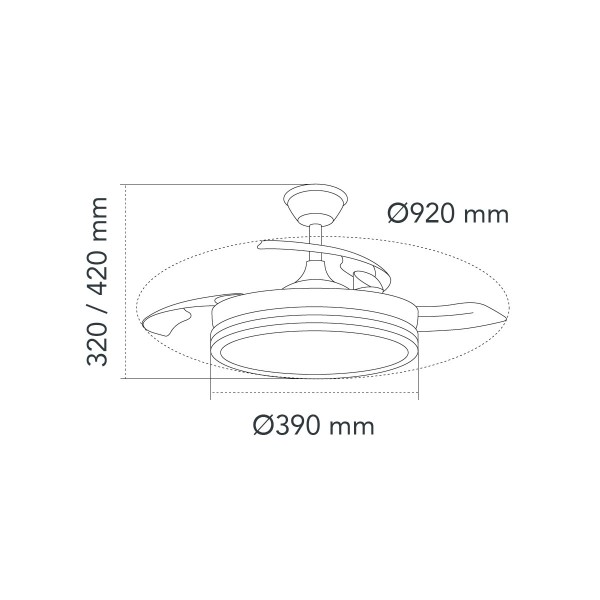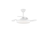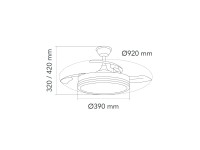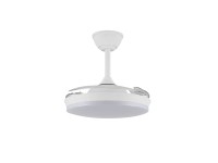 Ventilador con luz led fabricado en ABS y acrílico. 3 aspas. Motor DC 20.5w con 6 velocidades y modo brisa. Mando a distancia con temporizador y funcion invierno-verano. Garantía motor 8 años. Mide 92cm y 39cm cerrado y 32/42cm de largo (viene con largos de barra). Led CCT regulabe en tono e intensidad con hasta 3822lm 39w