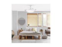 Ventilador con luz led fabricado en metal, ABS y acrílico. 3 aspas. Motor DC 30w con 6 velocidades y modo brisa. Mando a distancia. QR para APP móvil. Temporizador. Funcion invierno-verano. Garantía motor 8 años. Mide 106cm y 48.5cm cerrado y 32/42cm de largo (viene con largos de barra). Led regulabe en tono e intensidad con hasta 7920lm 72w.