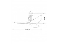 APTO PARA EXTERIOR. IP44. 132cm de diámetro. 2 largos de bara con altura total de 30/45cm. Sin luz. Mando a distancia con temporizador. 6 velocidades + modo brisa. Función verano/invierno. Motor DC silencioso. Estructura de metal y aspas acrílicas con acabado efecto madera.