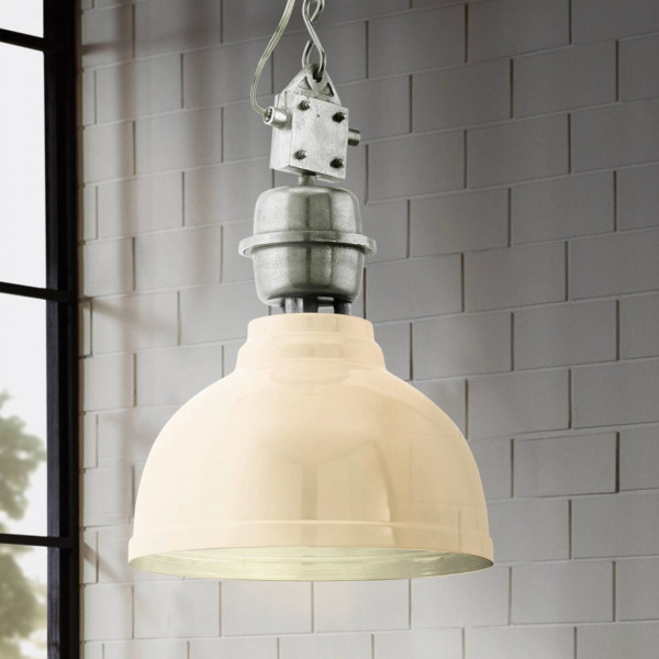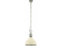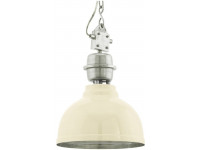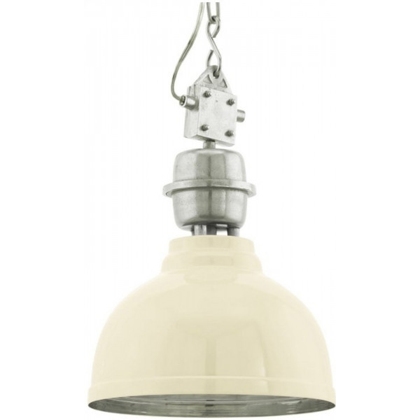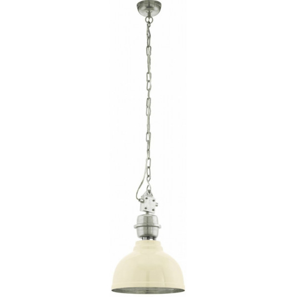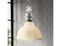 Colgante en acero acabado niquel y pantalla metálica crema. Mide 35,5cm de diámetro. Largo regulable con cadena, máximo 110cm. 1 luz E27
